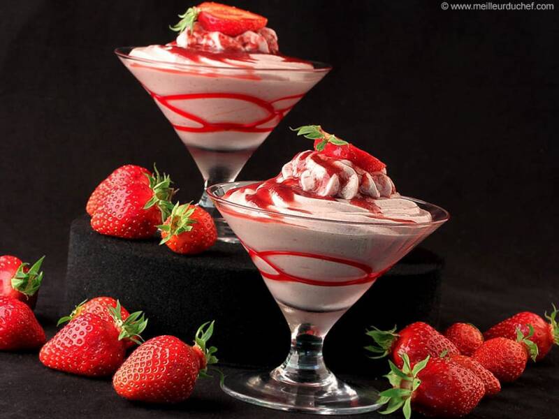 Mélanger délicatement la pulpe de fraise et le jus de citron à la crème fouetté